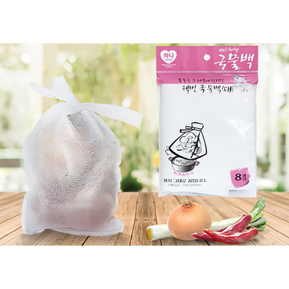 - Directions: 1) Insert anchovies, herbs, green tea, coffee, etc into the bag 2) Tear off the string attached to the bag 3) Tie the bag tightly 4) Put the bag in a boiling pot