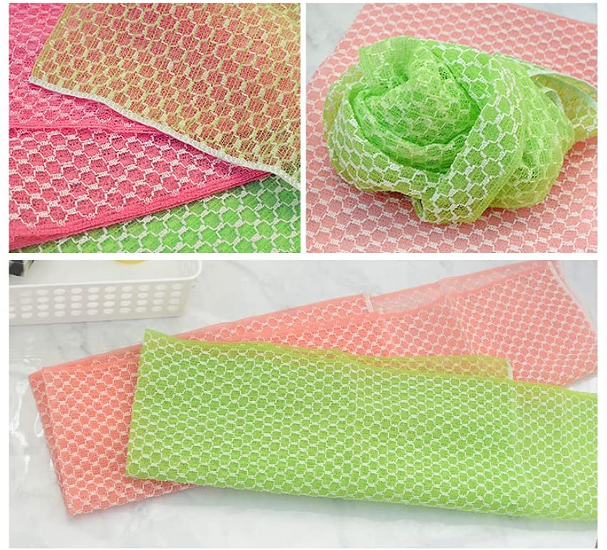 Korean Exfoliating Royal Shower Towel Washcloth Loofah Knitted with Crimped Yarn, Green and Pink