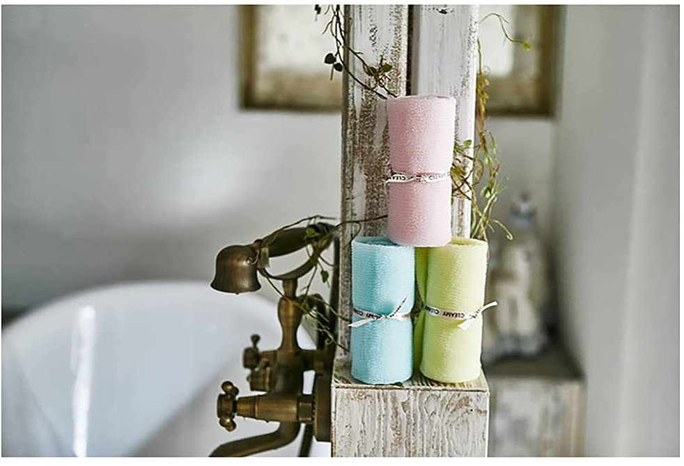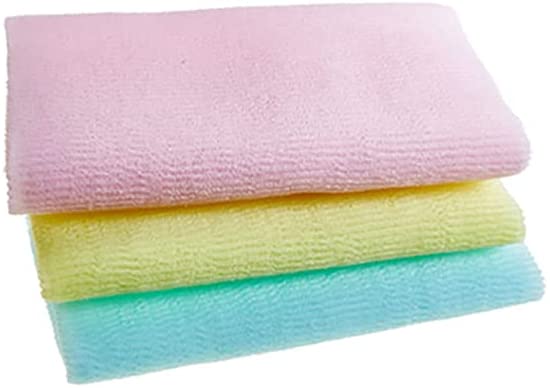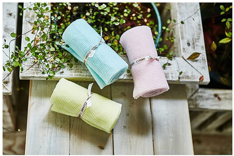 Korean Exfoliating Wave Shower Towel Washcloth Loofah Knitted with Crimped Yarn, Blue, Yellow, and Pink