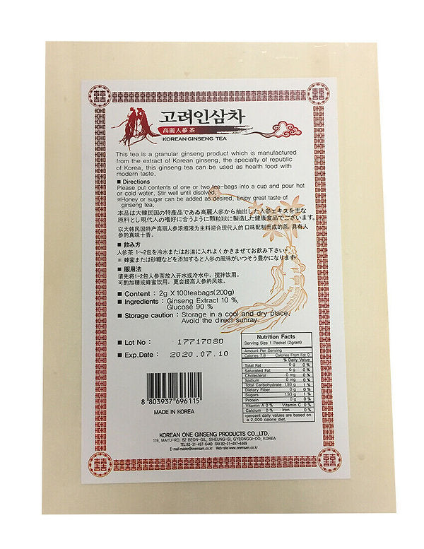 KOREAN GINSENG TEA 100 TEA BAGS X 2 GRAMS - NET WT: 200 GRAMS (7.05 OZ) - COME IN SEALED TRADITIONAL WOODEN CASE