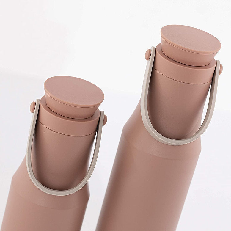 LocknLock Metro Tumbler Double Cap Bottle w/Hand Strap Stainless Steel Vacuum Insulated Travel Mug for Cold Drinks and Hot Beverages, 24oz, Pink