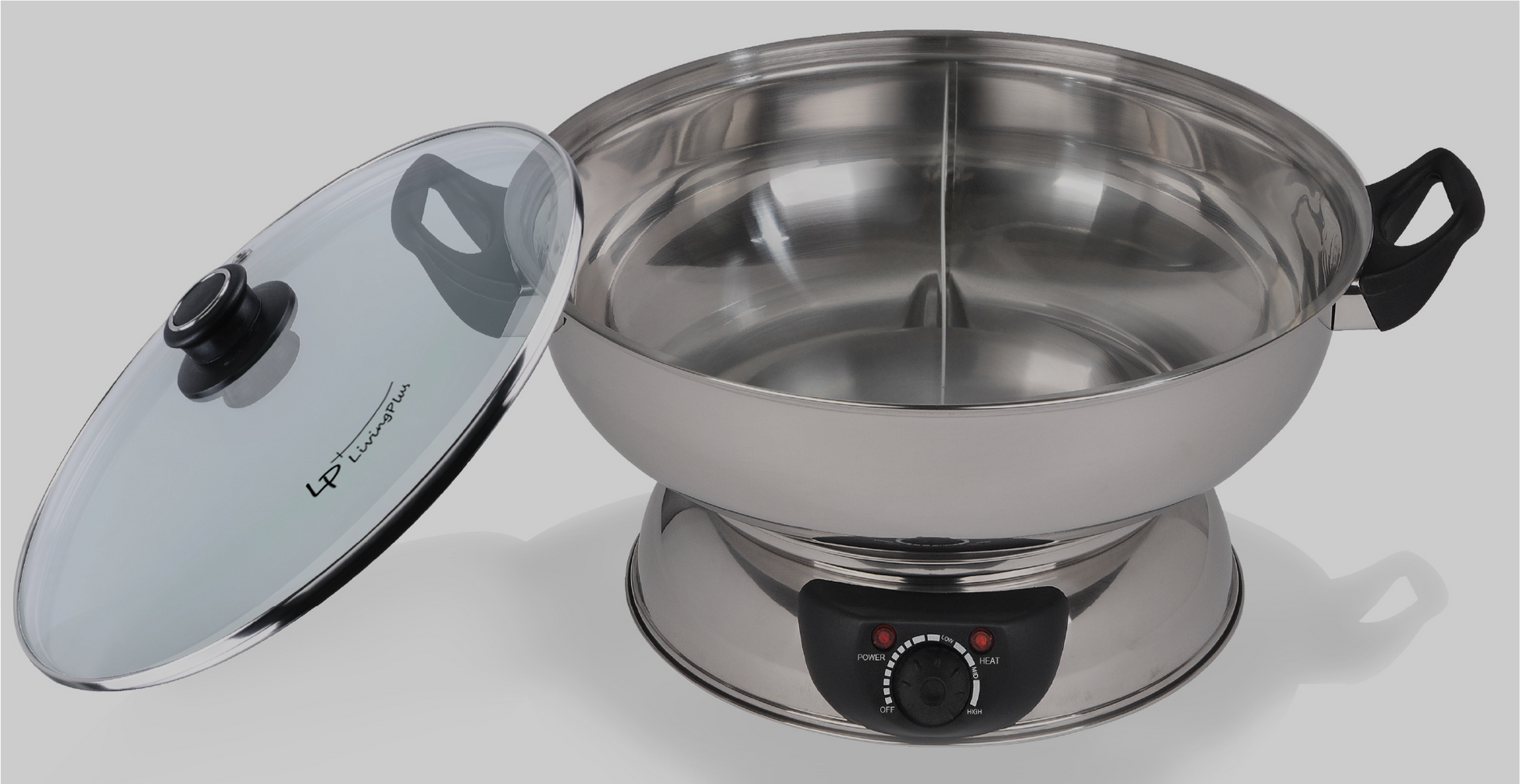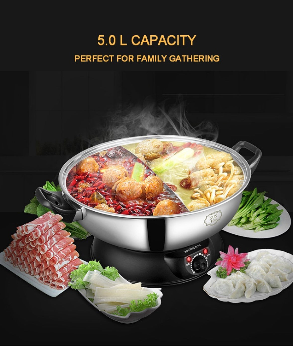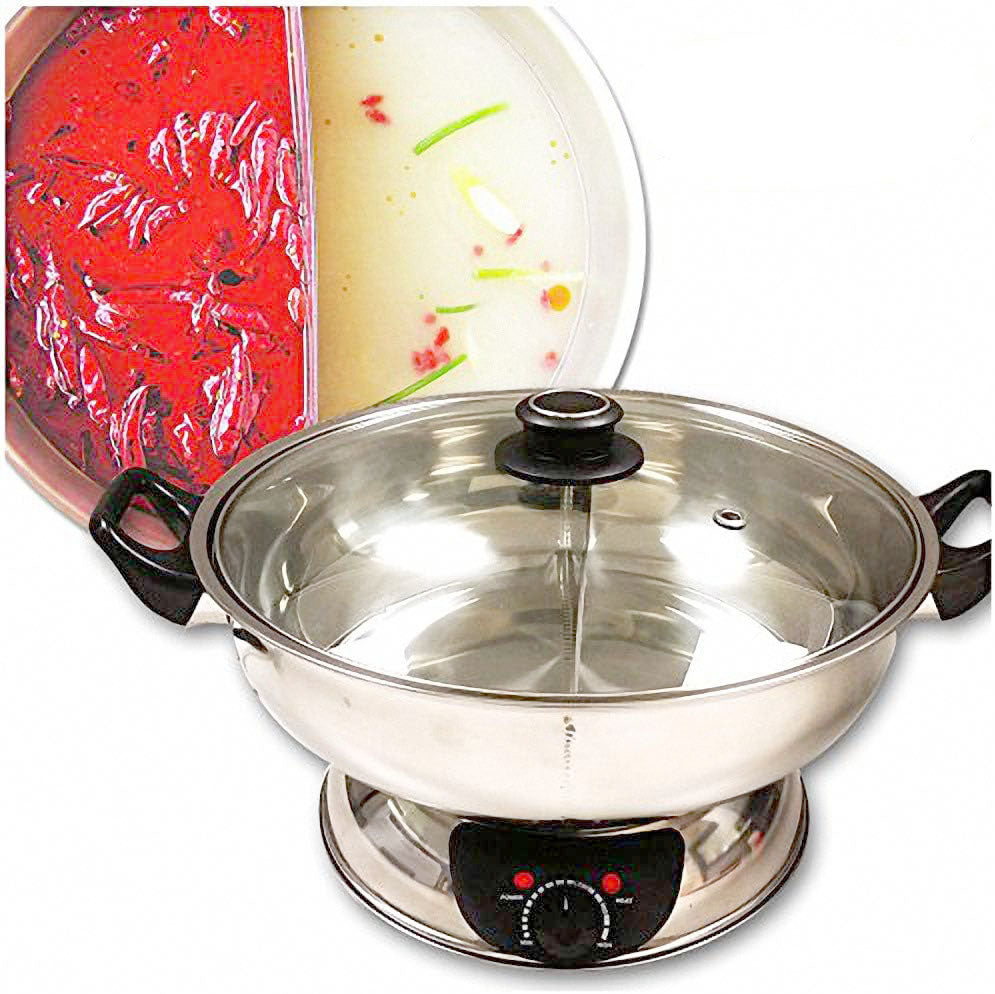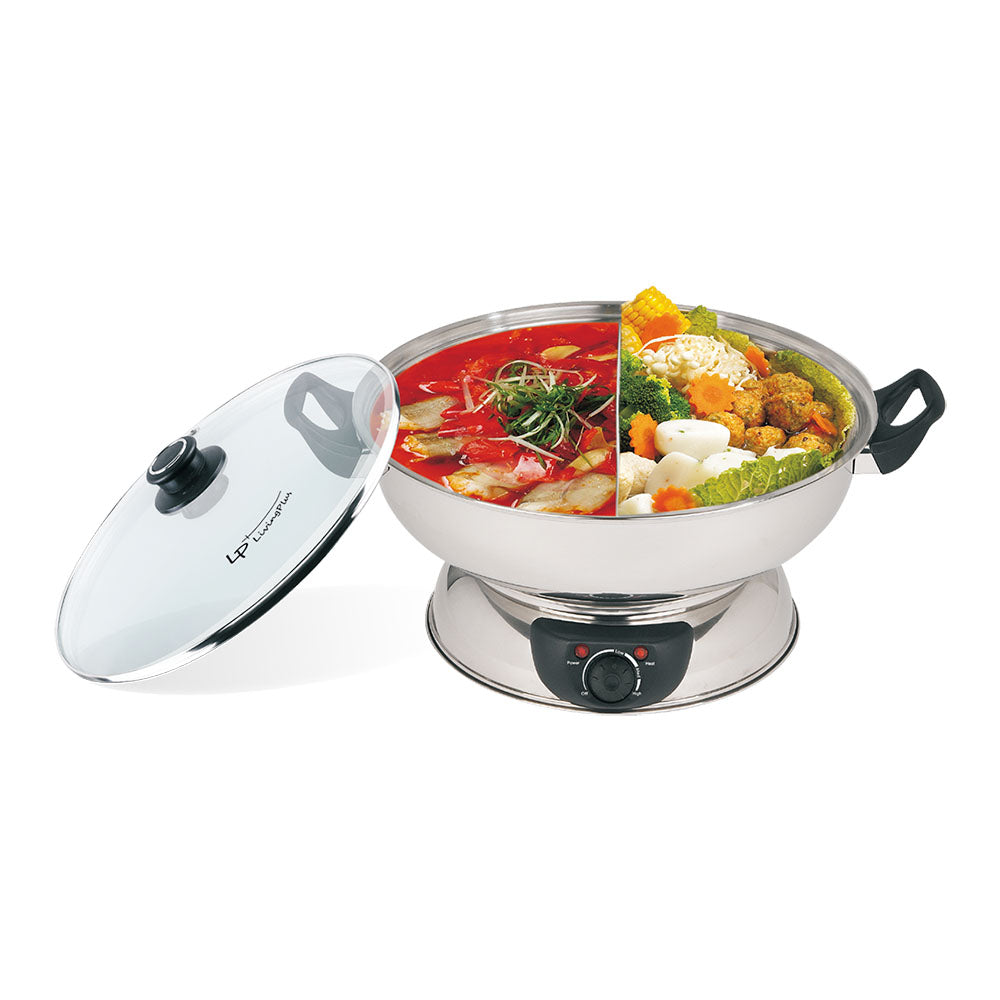 LP Electric Dual Sided Shabu Shabu Divider Hot Pot with Burner and Glass Lid, 5L
