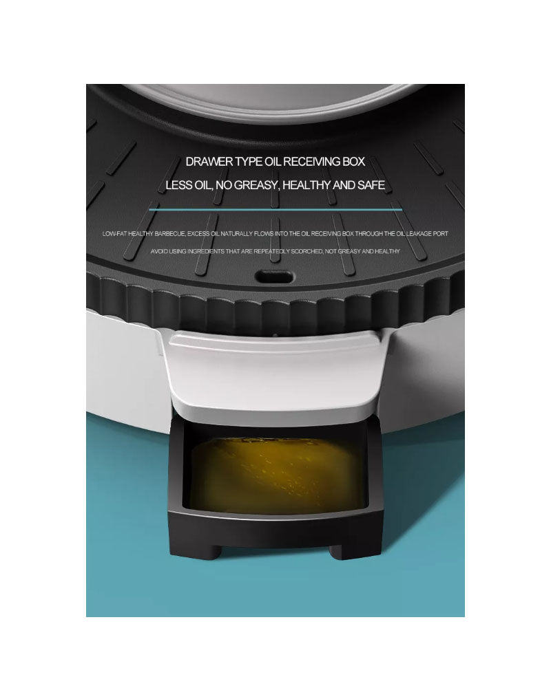 - Convenient Oil Discharge Tray: Includes a tray to collect excess oil and fats for easy cleanup
