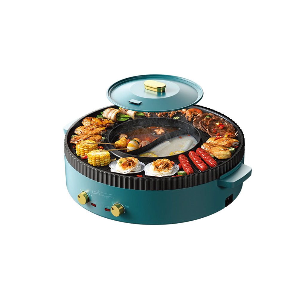 LP LIVING PLUS 2 in 1 Electric Grill & Hotpot, Dual Temperature, Non Stick