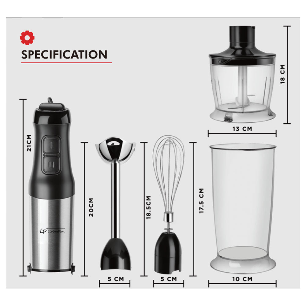 LP LIVING PLUS 500W 4 in 1 Electric S/S Hand Blender, Whisk, Chopper, Beaker Set