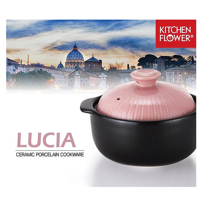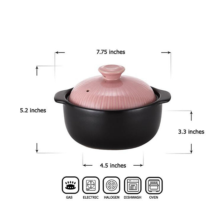 Lucia Natural Glazed Ceramic Porcelain Cookware Hot Pot (Sugar Pink 1000ml)