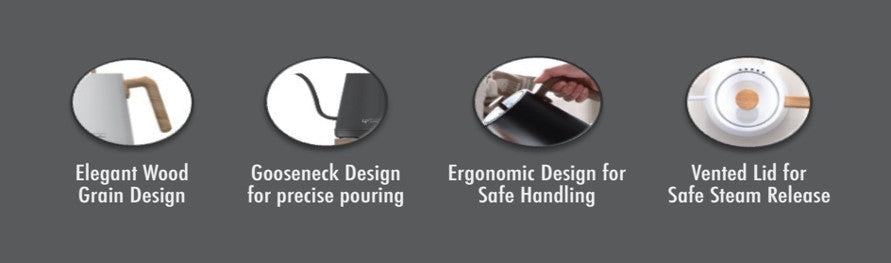 - Precise Control: Modern gooseneck spout with wood grain handle allows controlling water flow speed to make a perfect cup of coffee!