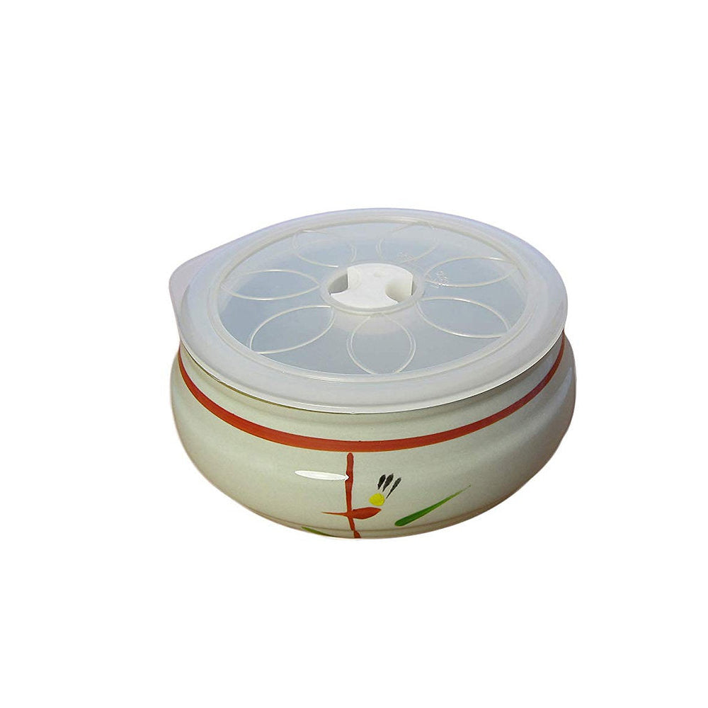 - Hand made ceramic storage and serving bowl with beautifully hand painted flourish designs.