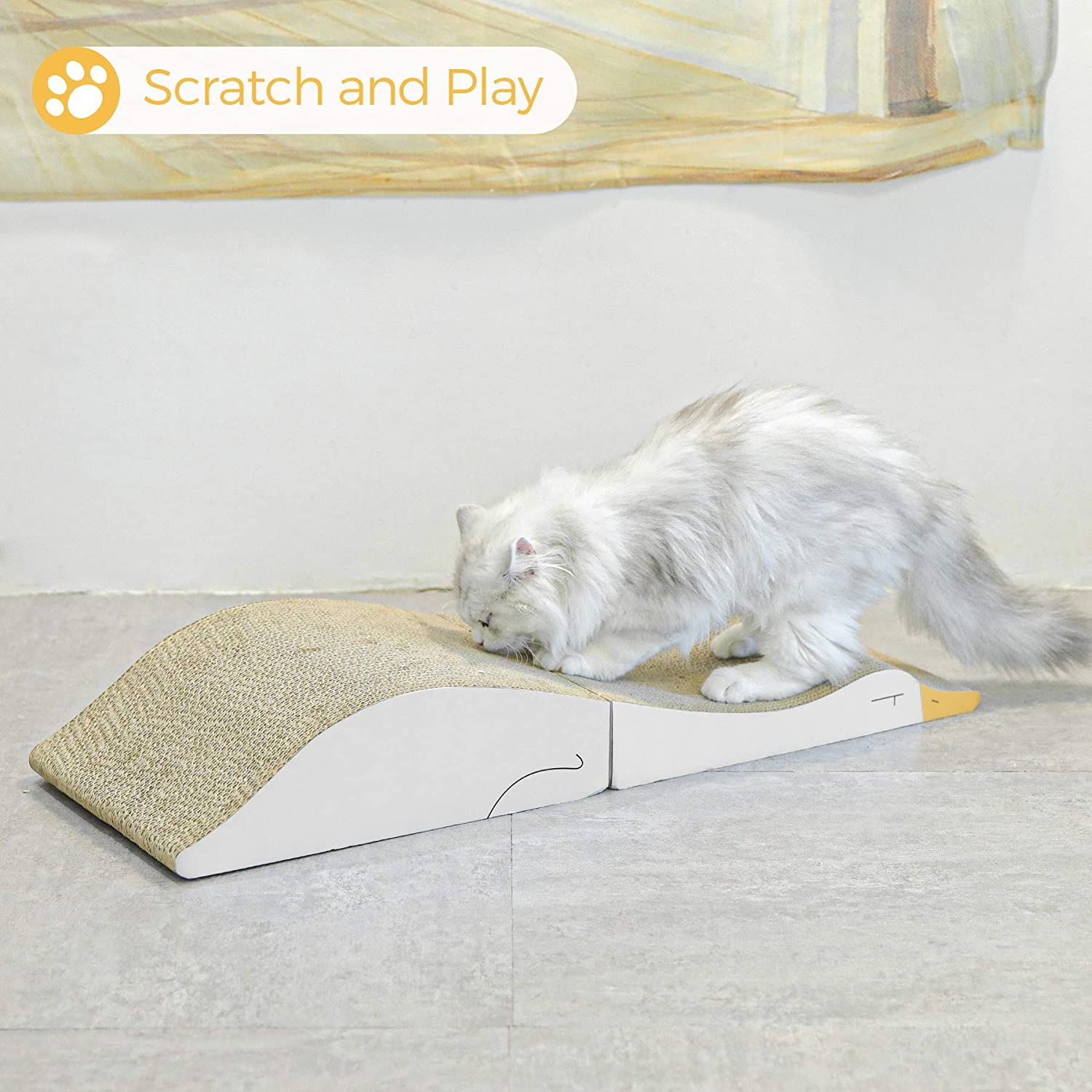 Pawfectpals Duck-Shaped Foldable Reversible Cat Scratching Cardboard Pad Lounge, Scratch and Play, Eliminate Destructive Furniture
