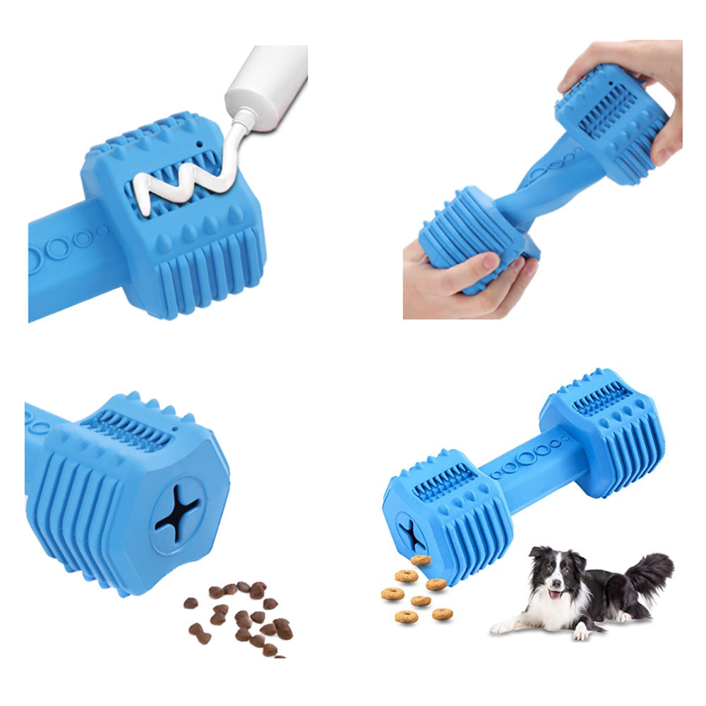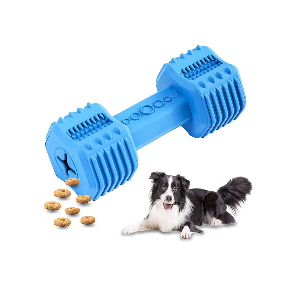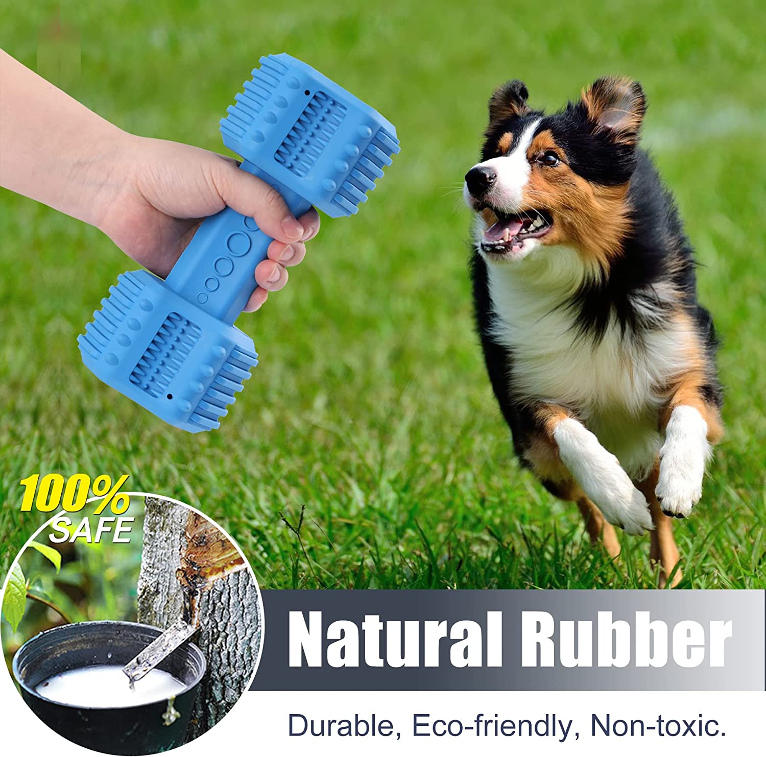 Pawfectpals Indestructible Dumbbell Dog Chew Toys for Aggressive chewers, Interactive Puzzle Treat Toy, Food Dispenser Feeder, Natural Rubber Bite Resistant for Healthy Teeth Dental Cleaning (Blue)