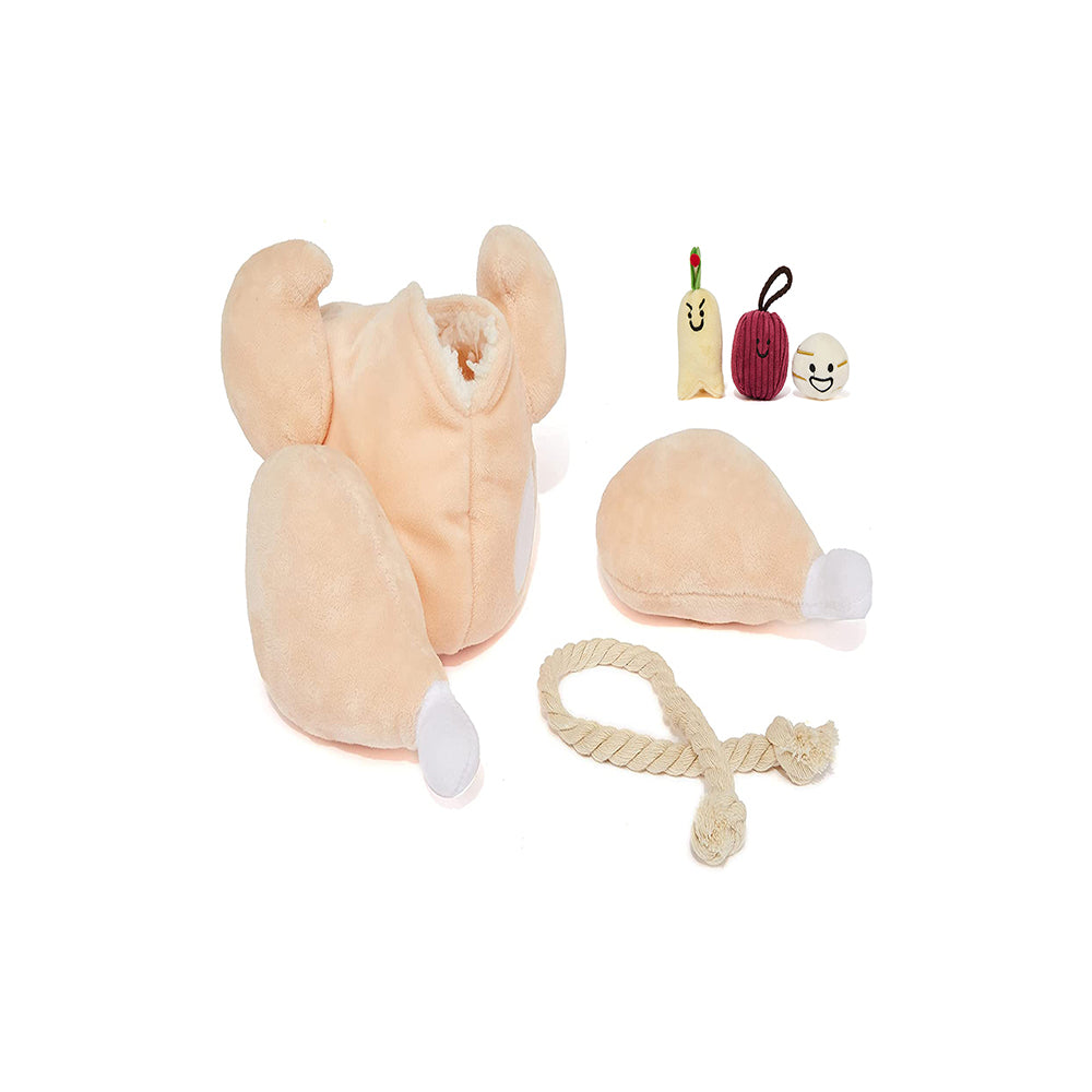 Fun and Interactive: This chew toy is a dog toy replica set of a Korean Soup, called SamGyeTang, which includes a whole chicken, a jujube, ginseng, and a chestnut. This is a Traditional Korean soup, made into an interactive dog toy!