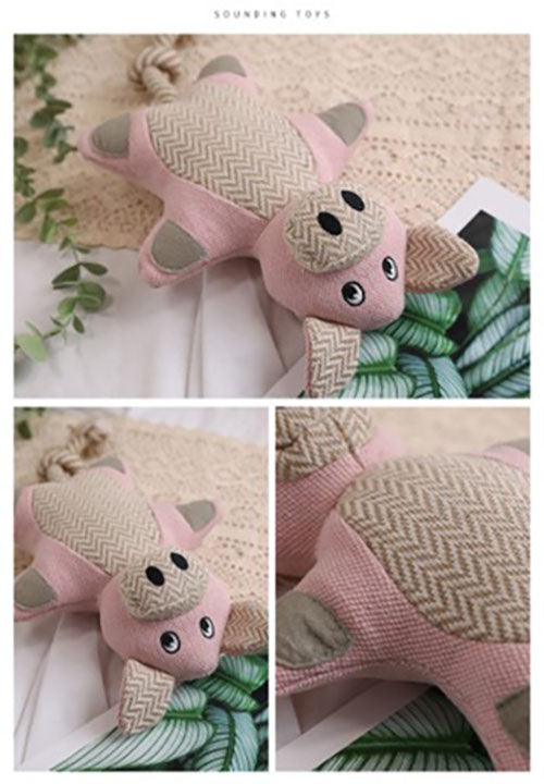 Pawfectpals Squeaky and Durable Dog Chew Toy with Rope Tail (Pig)